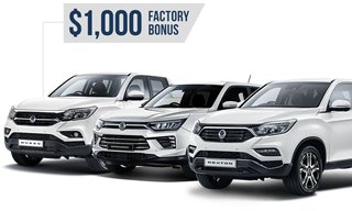 The $1,000 discount is available on 2020 plated Korando, Rexton, Musso and Musso XLV (Including Musso and Musso XLV MY20.5) in SsangYong Australia and Dealer stock. While stocks last and limited stock available.